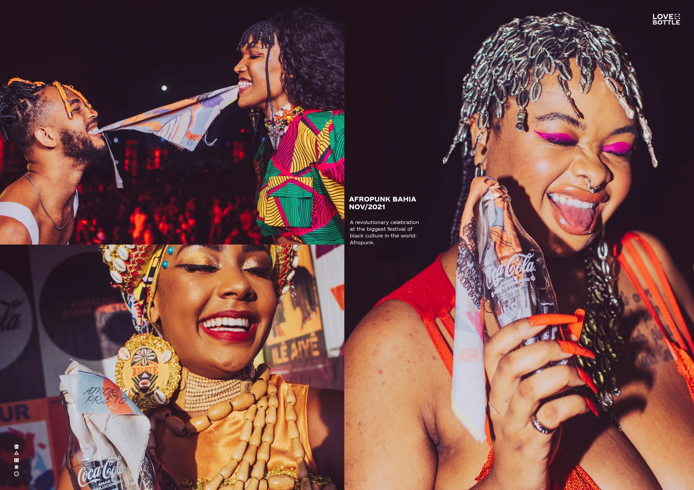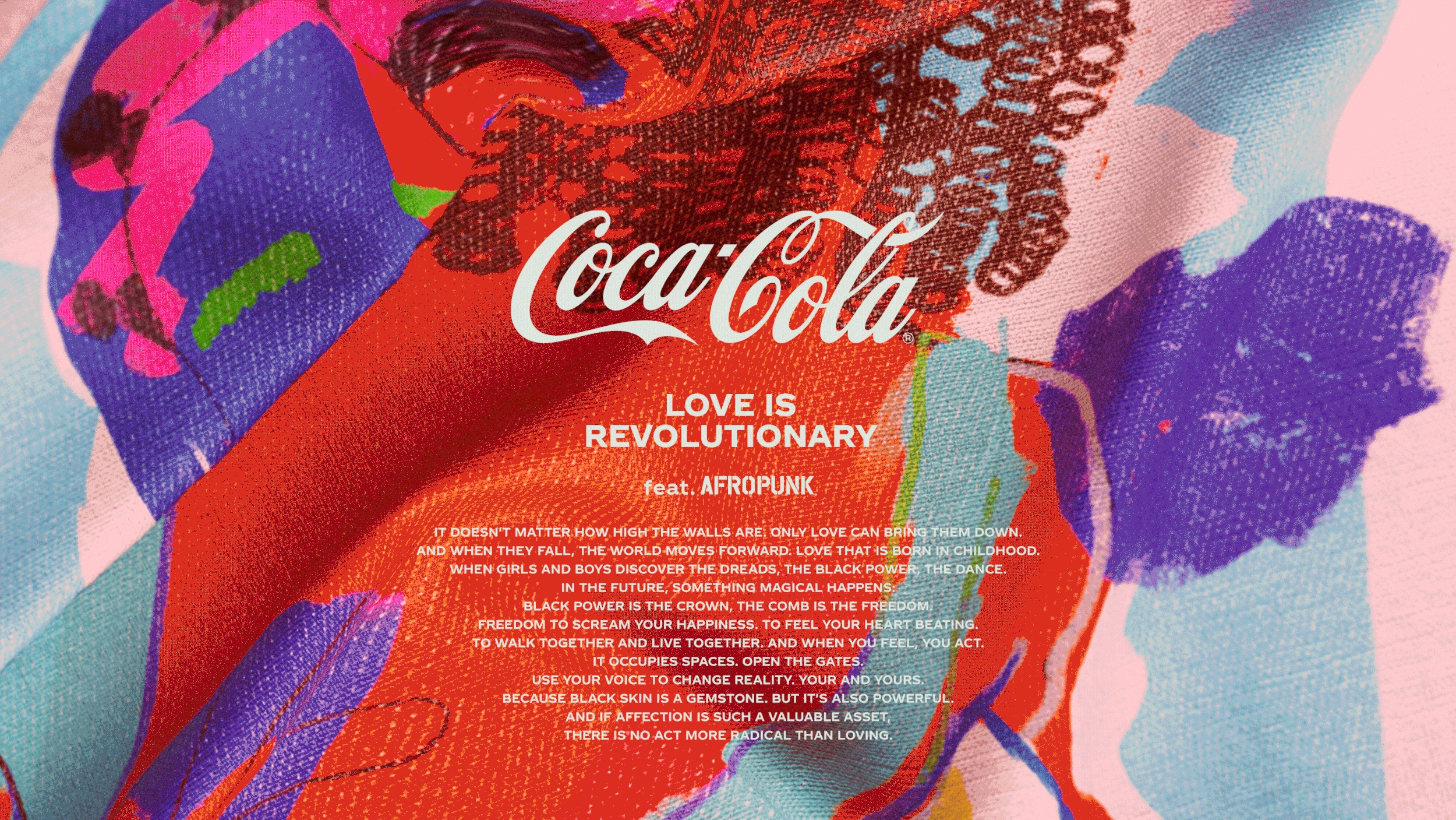 In partnership with Afropunk, we transformed Coca-Cola’s iconic glass bottle into a limited-edition design: the first Molotov Cocktail that spreads Black love. And we didn’t stop there. We invited Black Brazilian artists to illustrate the fabric that unfurls from the bottle, telling love stories of other great Black Brazilian artists. Each artist represented a unique way of loving: self-love, maternal love, love for one’s roots, love for culture, romantic love, and family love.